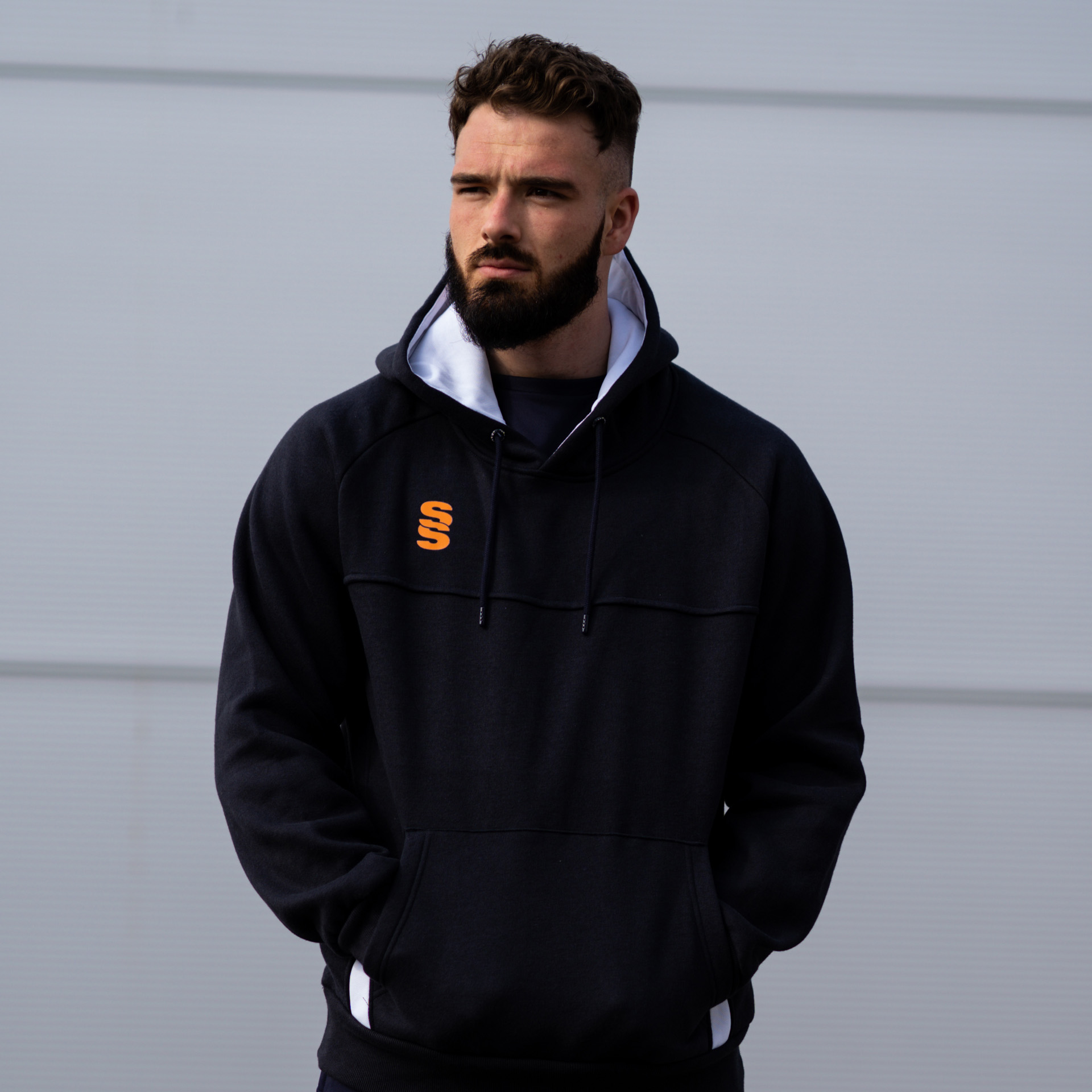 The Fuse Hoody is made of a polyester and cotton fabric blend, a heavy brushed fleecy backed material. The French seam shoulder construction adds extra comfort and durability. Featuring branded eyelets and tube draw cord, a large front hoodie pocket and forward side seams, with a contrasting insert. To finish, our Surridge SS logo is printed onto the right chest. Personalise your hoody with a choice of dual print and coloured SS logo.