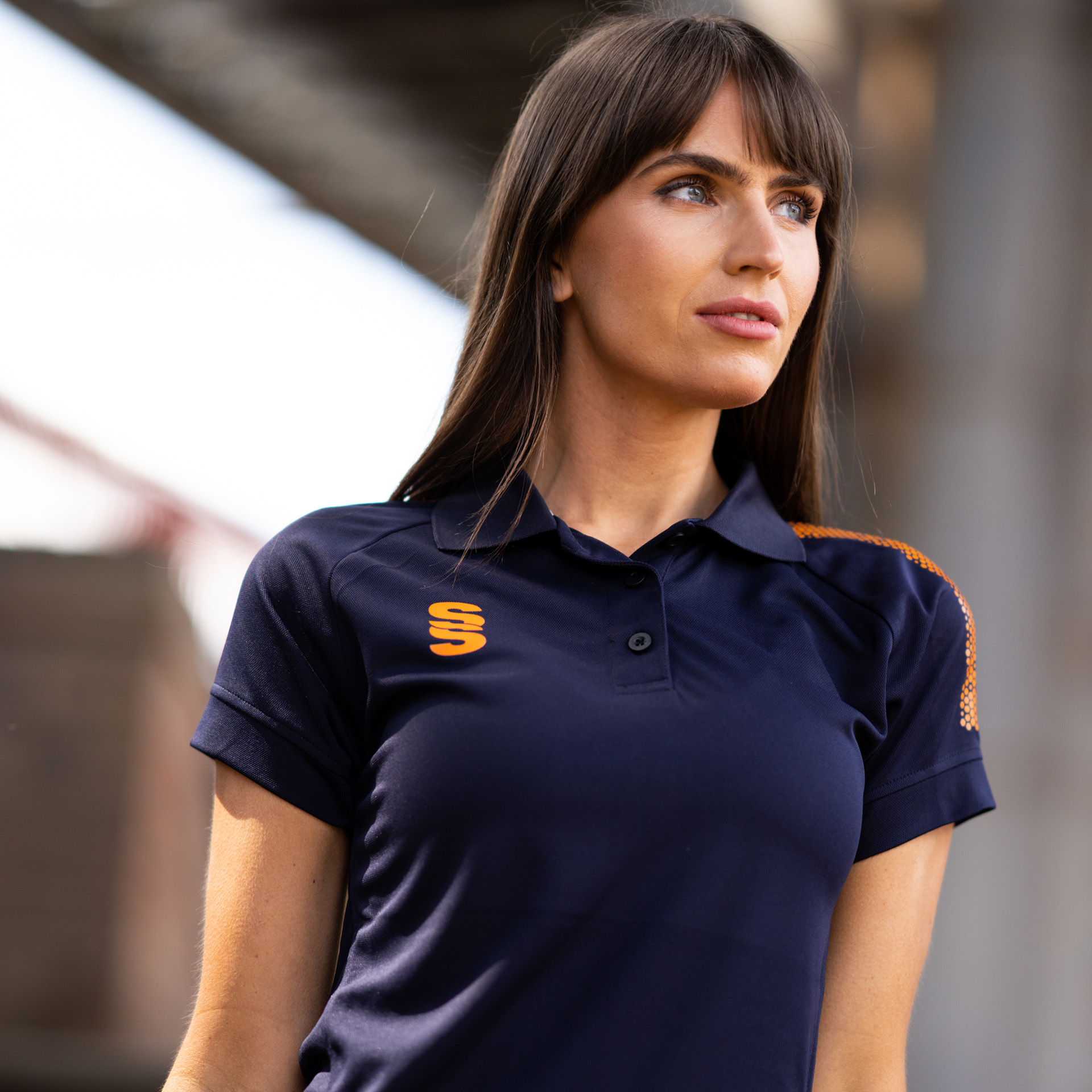 Staff Uniform - Dual Solid Colour Polo - Navy/Amber - Women's Fit